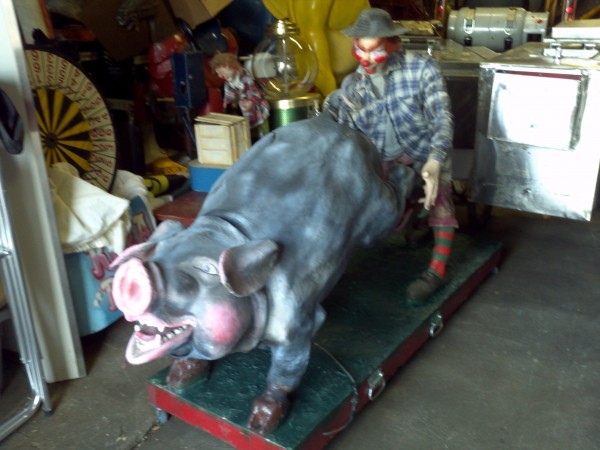 Amusement Park Funhouse Animated Clown Chasing Pig Automaton