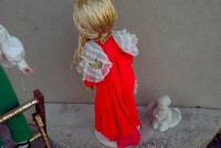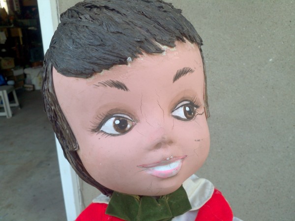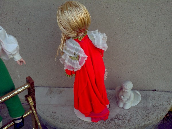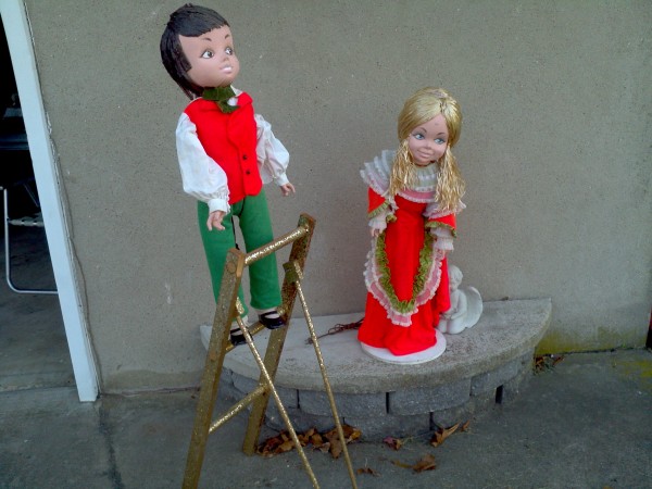 1970’s ,RK International girl and boy animated tree decorating store window display in working condition. Boy turns his head and moves his right arm as the girl turns her headĀ looking toward theĀ Christmas tree. Both faces have some minor peeling but overall the set is nice for Christmas displaying. All you need is a tree…………