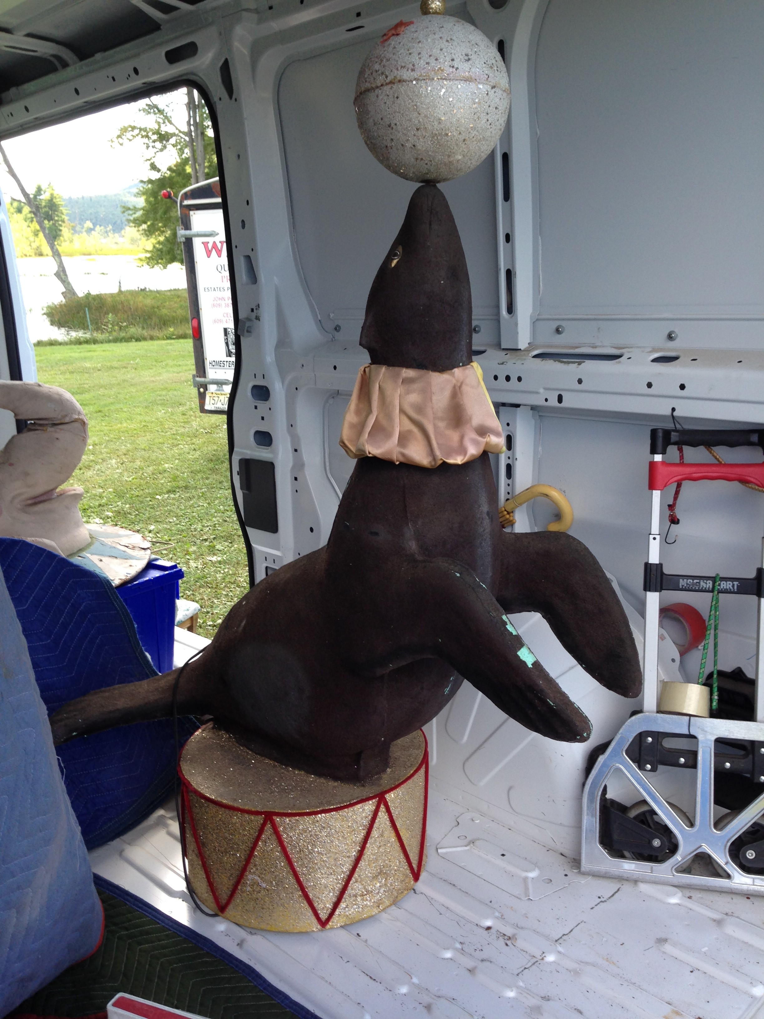 seal animatedVintage animated Seal window store display in as found working condition. Has some minor flocking loss, as expected with animation of this age, but otherwise in nice condition. Seal turns head as ball turns on nose.  All it needs is a new home……..