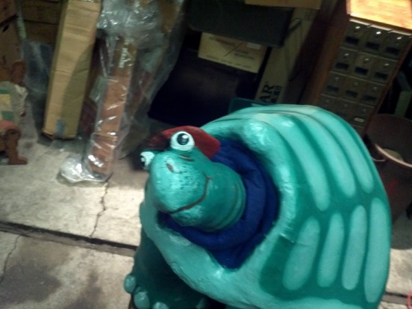 One of a kind animated paper mache turtle store display automaton in working condition. Watch as his head comes up from his body. Recently restored by a professional restorer and artist. You may never see one again…….