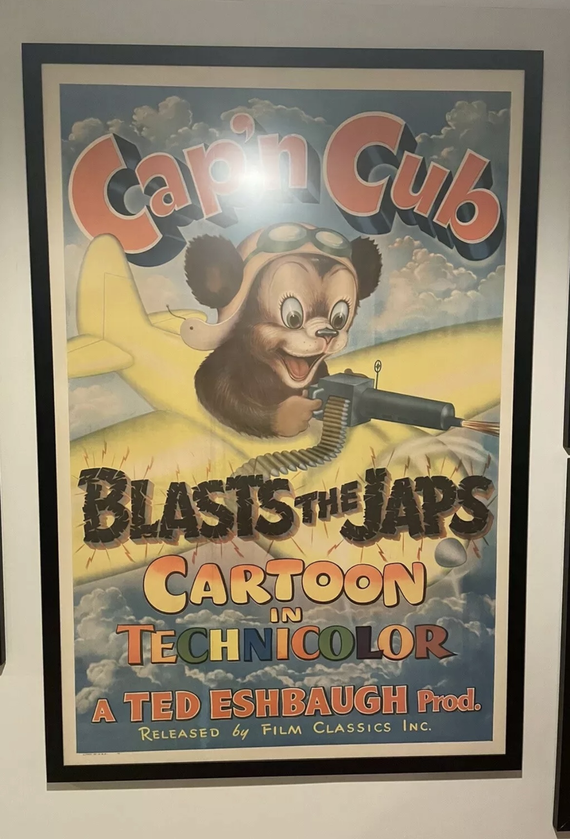 Anti Axis WWII Movie Poster “Cap’n Cub Blasts the Japs!” Cartoon in Technicolor