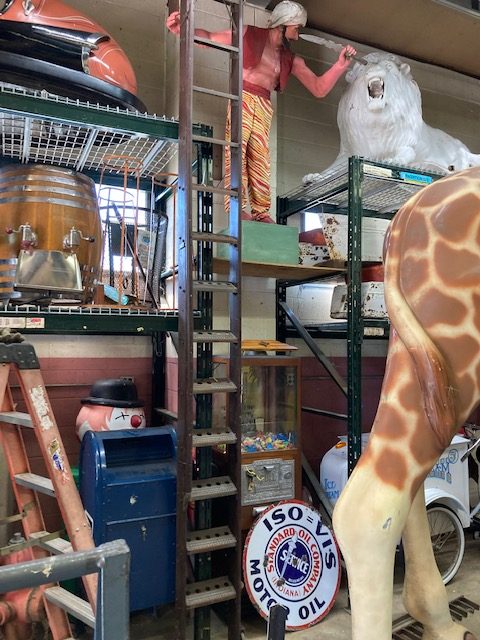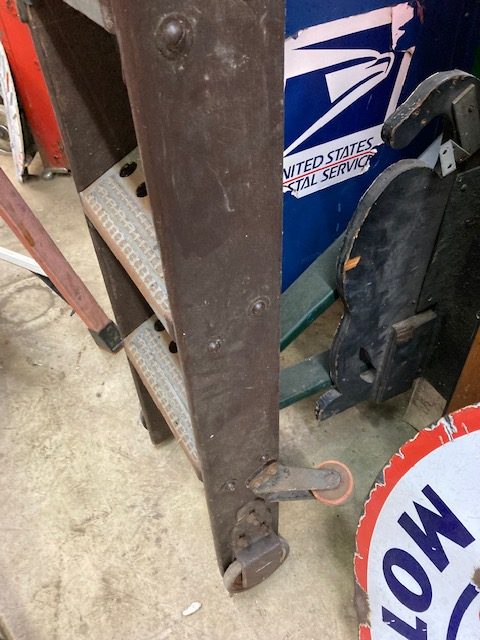 Antique 14 foot industrial general store rolling ladder in as found condition. Heavy wood and metal construction. Massive in size and something everyone should own……..