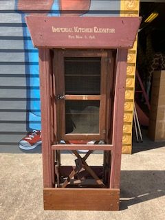 Antique 1900’s hardware store Imperial Kitchen dumb elevator in as found condition. Believed to be a salesman sample found in hardware stores to promote dumb elevators.