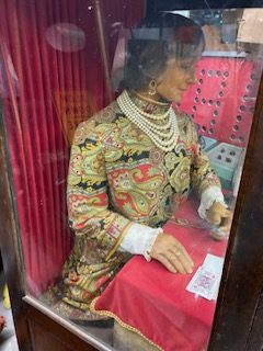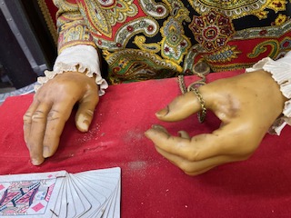 Antique 1929 penny arcade Cleveland Grandmother’s Predictions fortune teller machine in as found condition. Grandma was last used at Central Arcade, Seaside Heights, New Jersey and stored away for the past 40 years. When last used she did operate correctly but would recommend a good cleaning and adjusting before plugging in. As you can see from the pictures the main section has been taken off the base before being stored away. Comes complete with extra cards and wooden canopy. Grandma has never been offered for sale before, so nows your chance to own a real treasure. You are welcome to stop by for a closer look or ask questions via email, text or phone. More pictures are available, just ask…………….