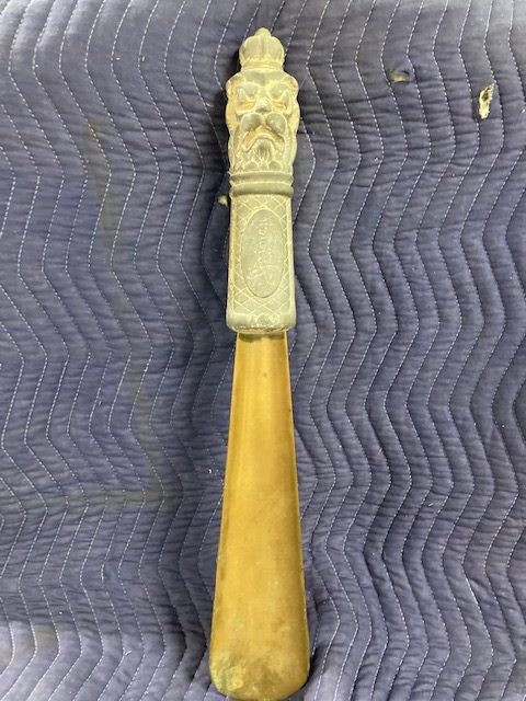Rare antique Jarman Shoe Store Shoe Horn  advertising door pull in as found condition. Heavy brass adorned with the Jarman insignia. You may never see another on of these…………