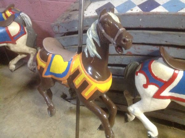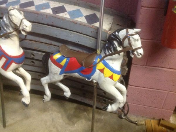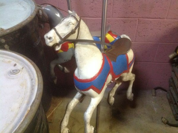 1950’s heavy cast metal Allan Herschell merry go round, carousel horses in as found condition. 21 horses available , sold by the piece. Nice park paint with some chipping. Horses measure 32″ long x 28″ high x 7″ wide weighing about 100lbs with pole. Get them while you can…………