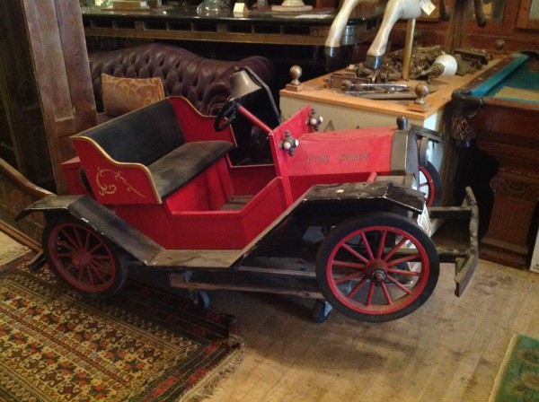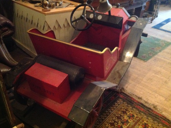 Vintage 1950’s Alen Herschell Model T Fire truck amusement park cars in as found condition. Cars are off an amusement park ride last used in the 1970’s when the ride was parted out for lack of use. Heavy steel construction, chain driven. For display only as cars are designed to ride on a track. Two available…………..