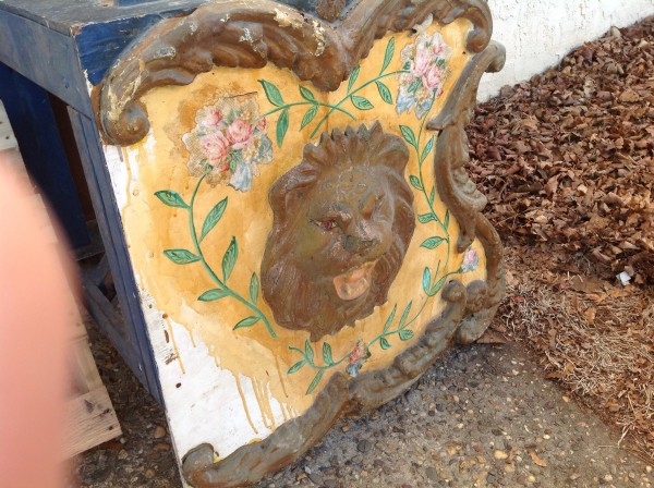 Vintage amusement park band organ drum sides off a Logan organ made in Miami, Florida. The organ itself is long gone but the drum sides survived and ready for displaying. As found condition with bright park paint colors. Use your imagination……….