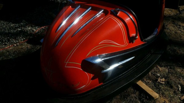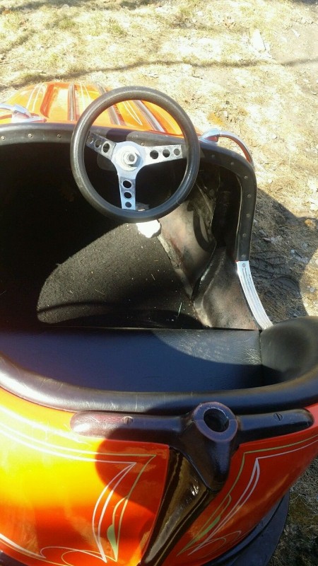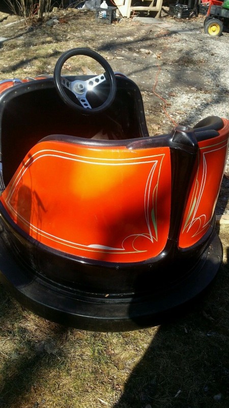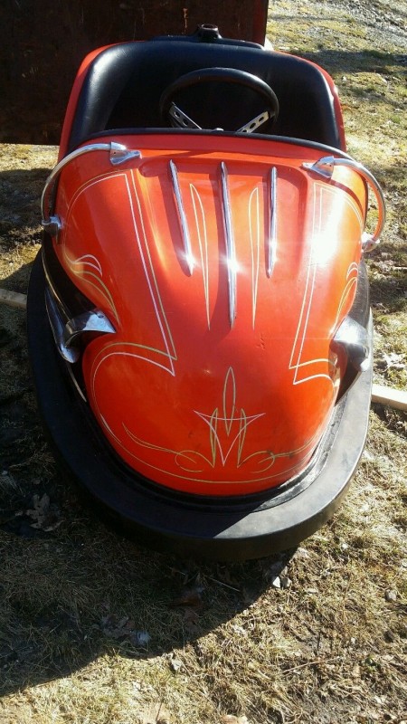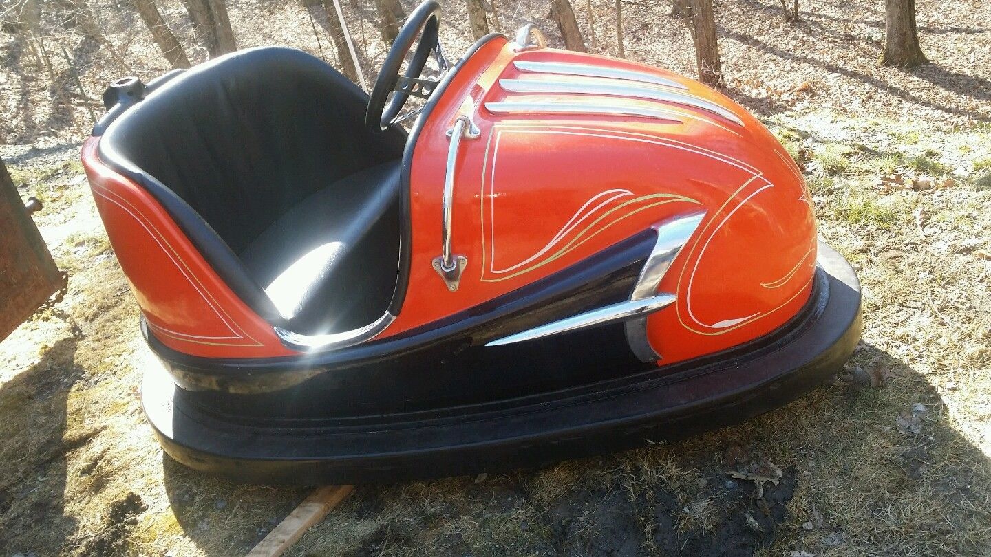 Nice antique amusement park Dodgem bumper car in restored as found condition. No motor and steering wheel is not original to the car but otherwise in very nice condition. Older restoration with some nicks and scratches but will display very well…………