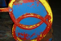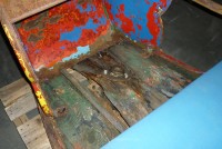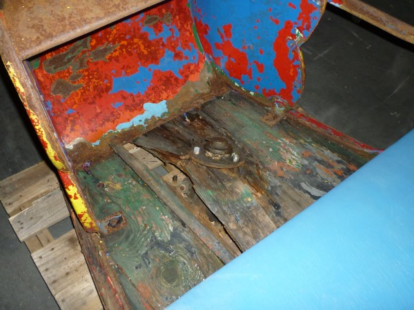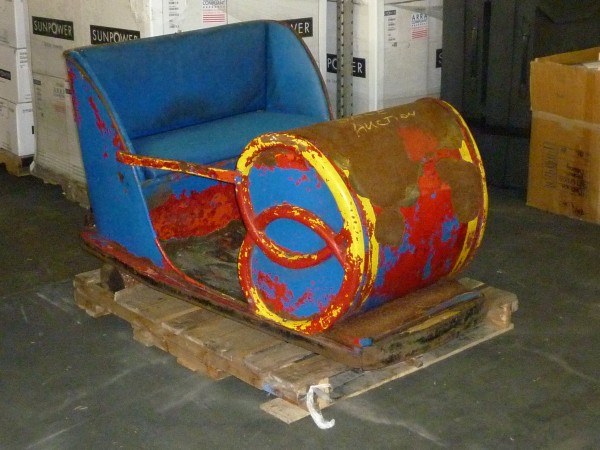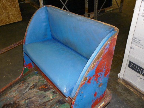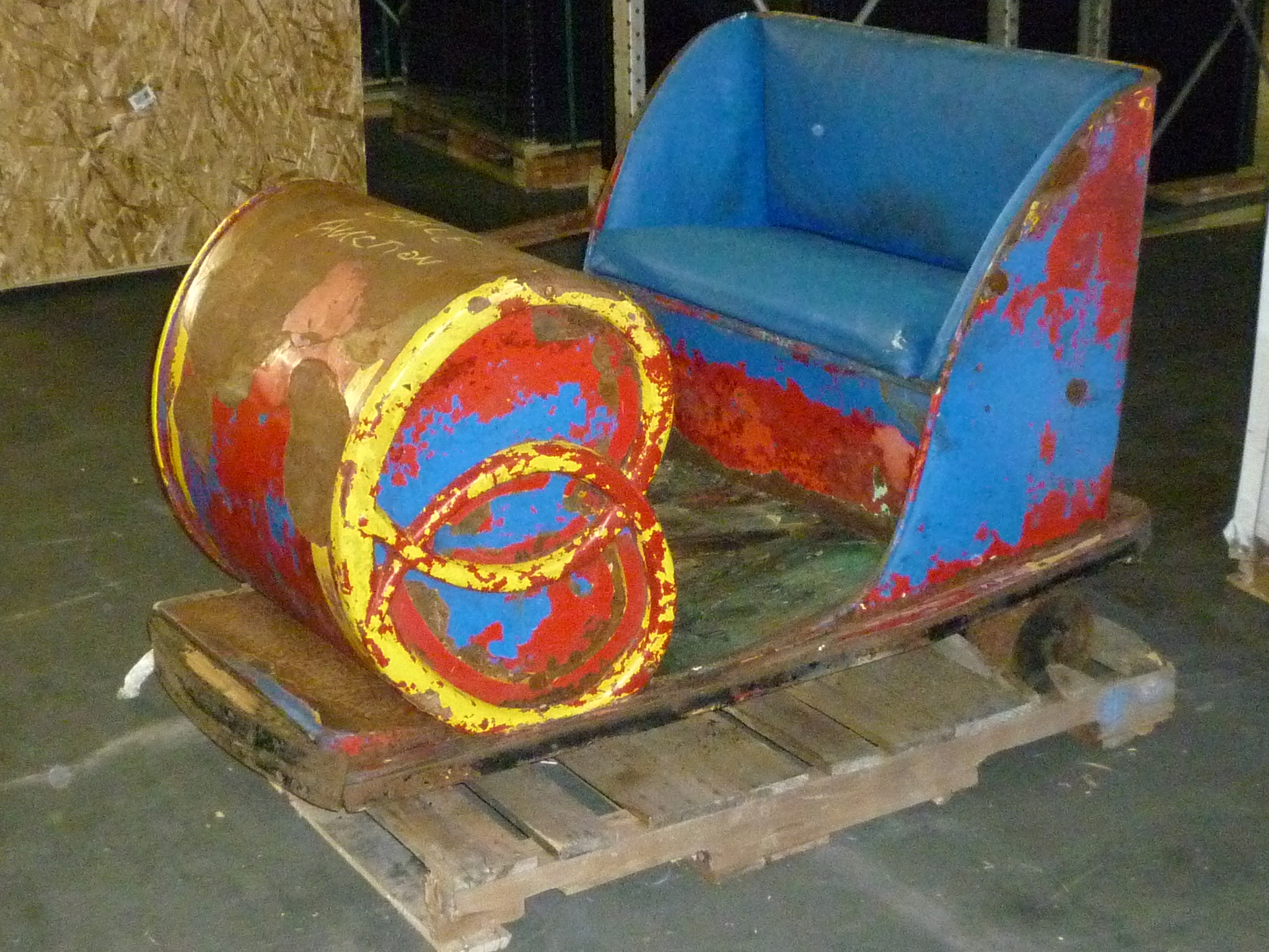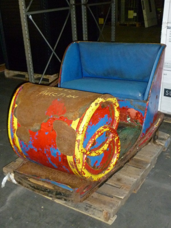 Antique amusement park fun house pretzel car in as found condition. Will need restoration but hard to find in this condition. Metal construction with wood floor. This will bring back memories of those days at the park and spooning with your “Gal” as you traveled though the dark fun house…..