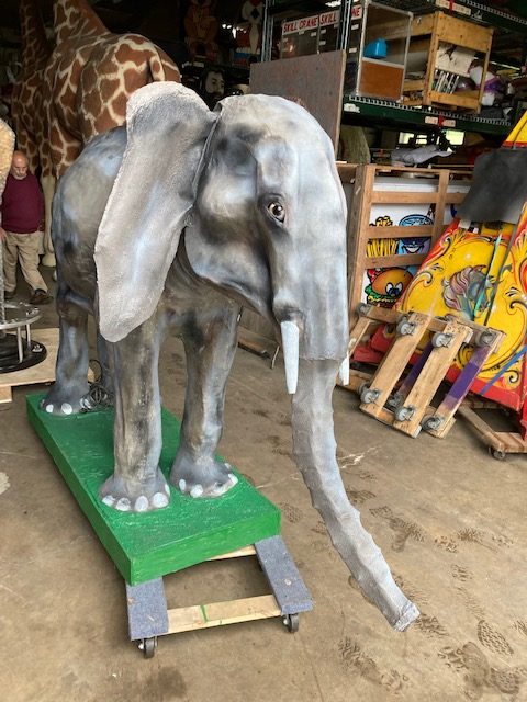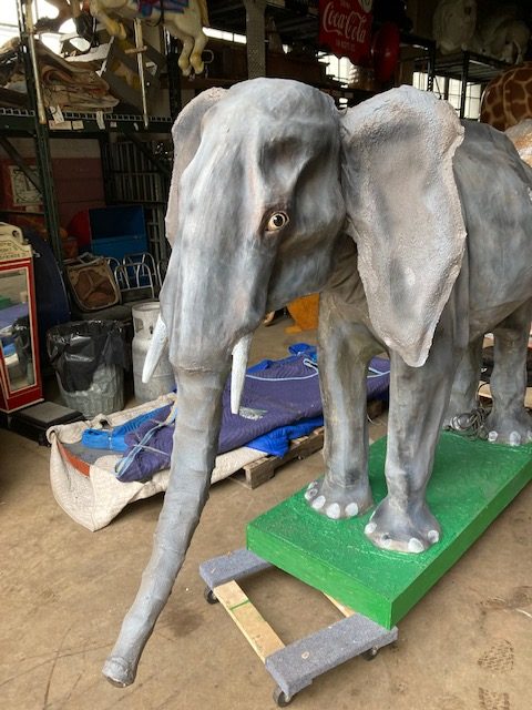 Restored vintage antique Amusement Park mechanical animated elephant in working condition. Wonderful example of animated animals manufactured by the famous Messore Damon Company, New York back in the early 1950’s. Eyes move as well as the trunk and ears. Hard to find another one fully operational. Just beautiful. Video of movement available upon request…………