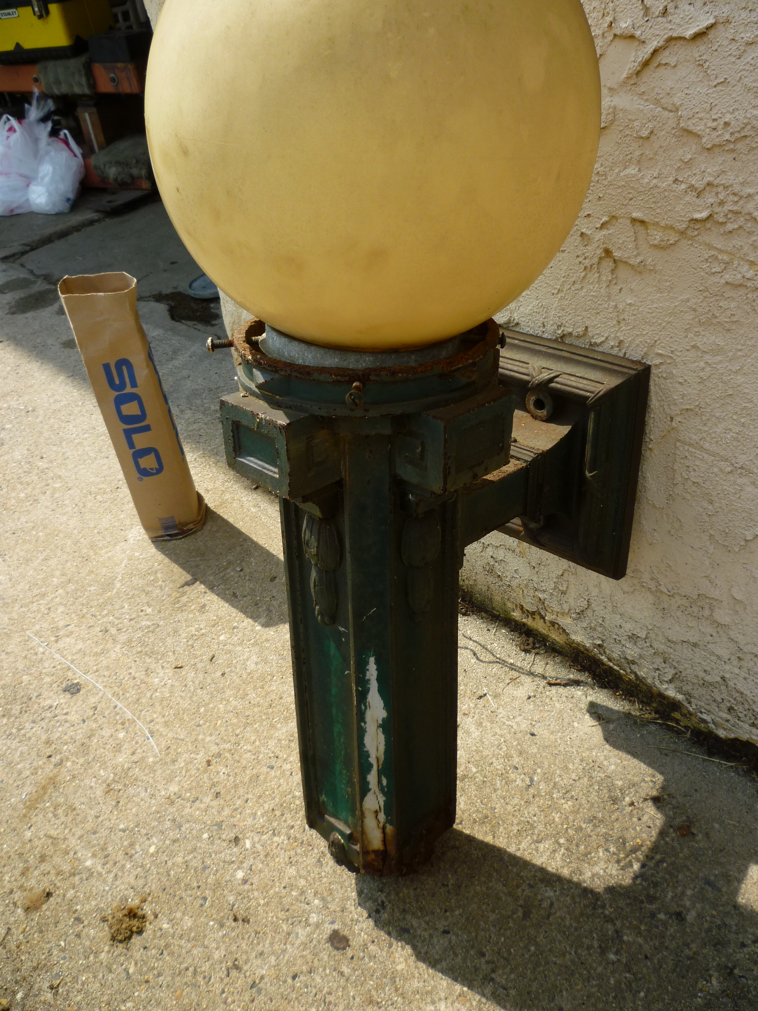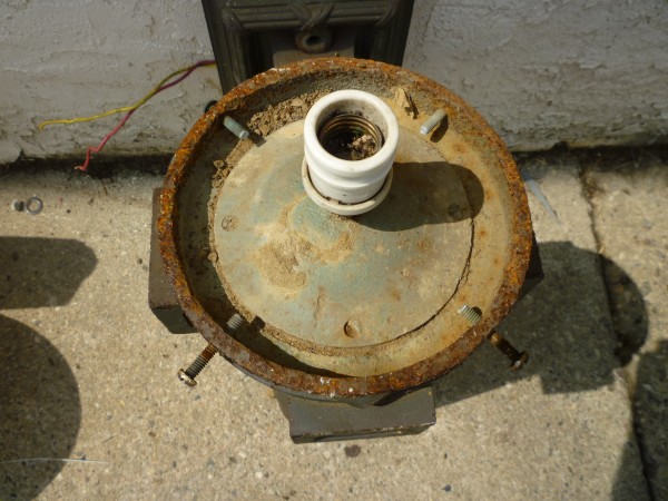 As found condition with a few minor defects. Will need a weld joint repaired. Nice patio or garage light………