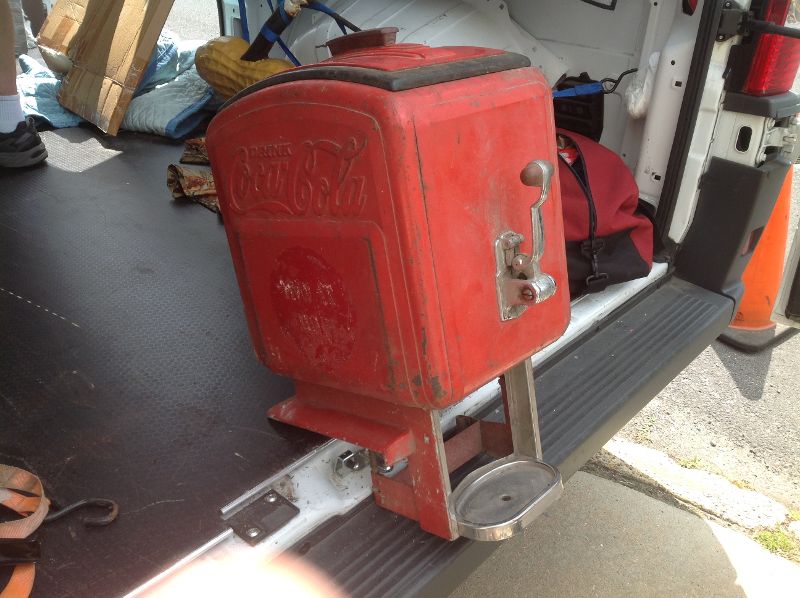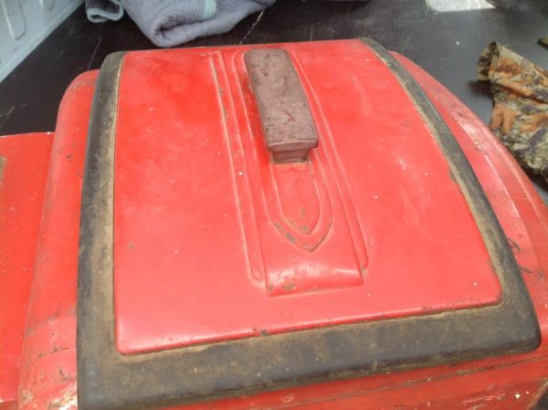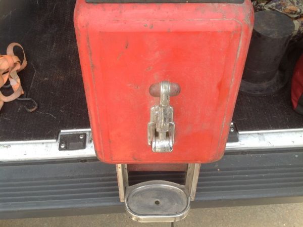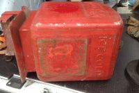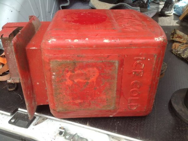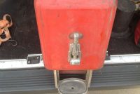 Antique art deco Dole Coca Cola dispenser in as found condition. Dispenser will need to be restored but looks all original with the exception of a few missing parts. One being the top lid to the syrup section inside the cooler the others, hard to determine, but having to do with the spigot. Top red lid has original rubber banding with one small crack that can be repaired. See photo’s for a better view. Nice old piece with potential………..