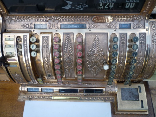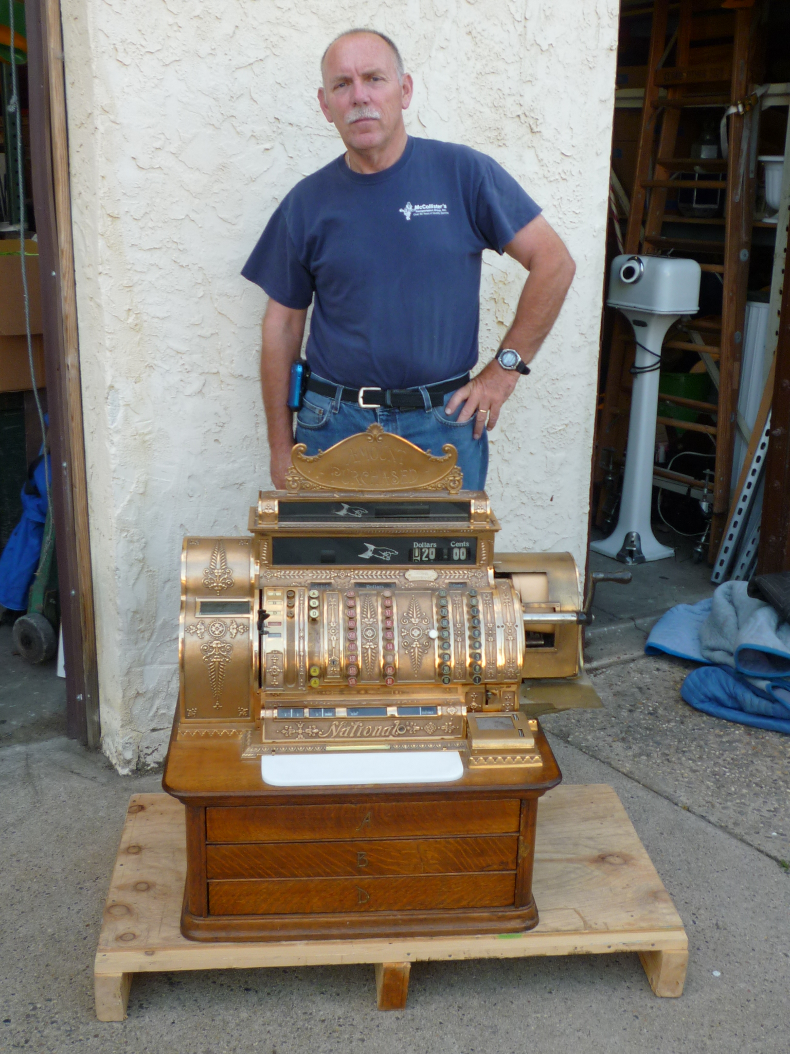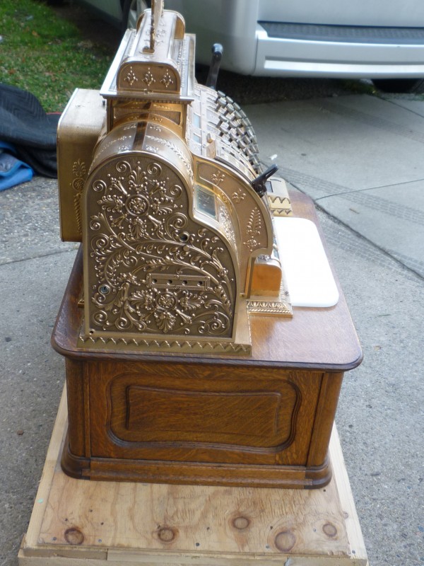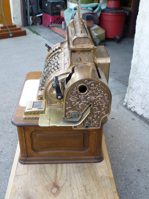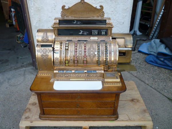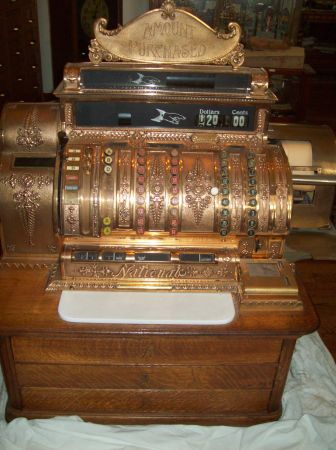 National Cash Register Model 552{2} EL-3C in beautiful condition. Polished and refinished over 30 years ago where it was the focal point in the foyer of a large house on 13 acres in Bucks County, PA.