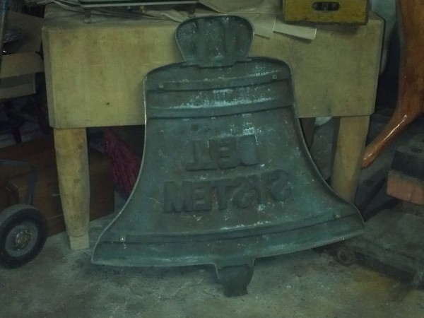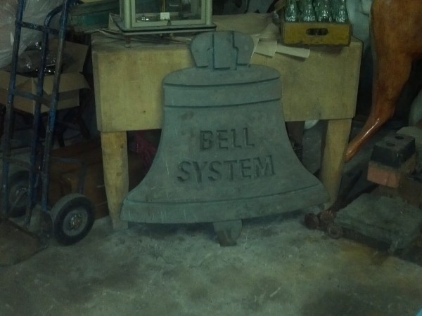 Antique bronze Bell System telephone sign measuring 39″ x 39″ x 2″ right off the now demolished Bell Telephone building, Camden, New Jersey. Building was raised over 20 years ago and the sign has been in storage since then. Wonderful advertising example……….