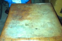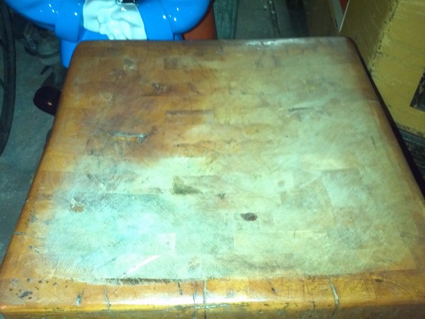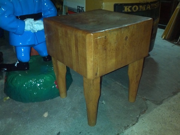 Antique butcher block in as found condition. Measures about 30″ x 30″. Dust off and add to your country kitchen…………..