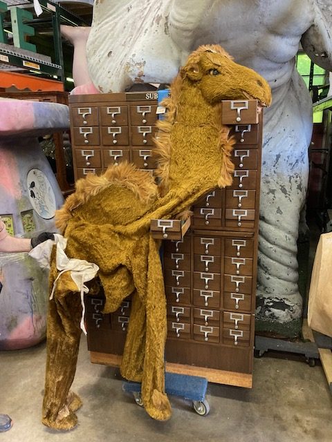 Antique Camel costume from A.T. Jones & Sons, Baltimore, MD in as found condition. A.T. Jones was a costume prop shop, now closed originating way back in 1868. The oldest company on record who provided costumes and theatrical props worldwide. Google for more history on A.T Jones. 9 Camels to choose from all needing some restoration and showing signs of wear. Paper mache and other composite materials used and created by Jones back in the 1950’s. Nows your chance to own a true piece of Americana. Buy one or all, its your choice………..