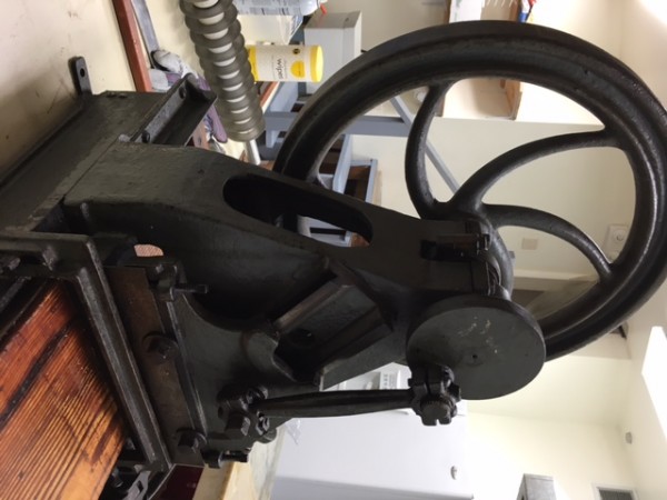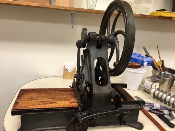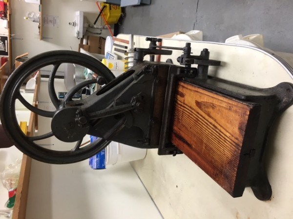 1860 antique candy store caramel cutter in as found working condition. Heavy cast iron cutter used up until a few weeks ago until we made the purchase. One foot chipped. When was the last time you saw one of these???…………………..