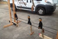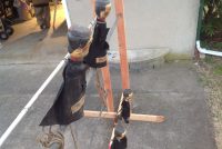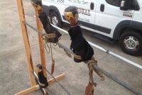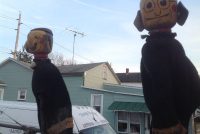 Antique, handmade carnival knockdown game in as found condition. Figures are made of wood, fabric and leather. Not sure how game plays or if all parts are there but the most important figures are present. Expect this game to be a ball or beanbag game. Found in a dirty, dusty Northeat Philadelphia church attic. You will not find another. Look at pictures to see figure details. Early carnival art. Real Americana………..