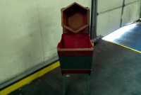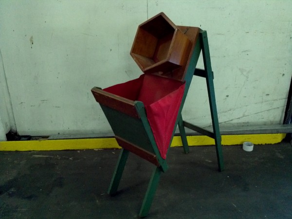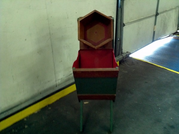 Antique carnival midway/boardwalk scissor bucket game. Toss a ball into the bucket hole and win a prise. A trick to winning that only the game operator knows. Great collectors item for the carnival enthusiast. Find out what the trick is……….