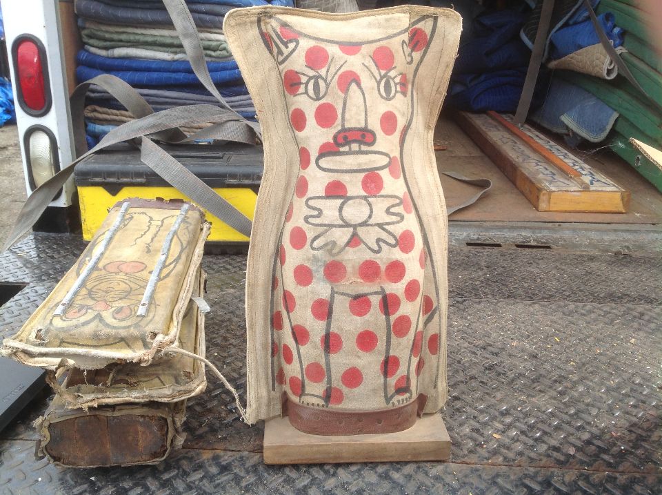 Rare antique carnival six cat knockdown in as found condition. Shows years of use but a very nice example. Items to the left of cat not for sale…………