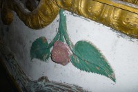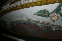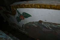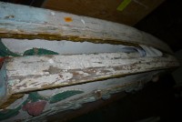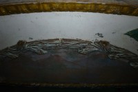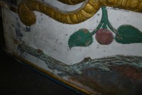 Antique 1920’s carousel rounding boards with light sockets measuring approximately 10′ long. Maker unknown but appears to be from a traveling carousel. Carved wood branches, flowered stems with leaves over metal backing. Both need restoration. Buy one or the pair. Makes a great project for any hobby or carousel enthusiast………
