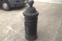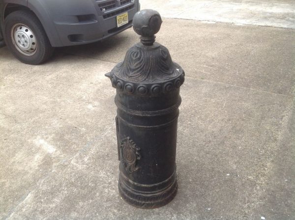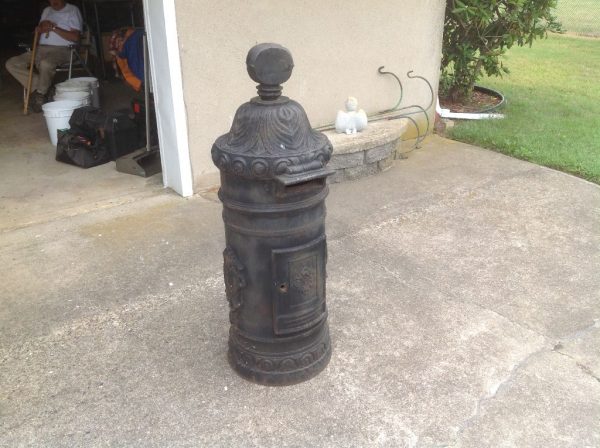 Vintage antique English cast iron mailbox in as found condition. Missing original lock but otherwise looks to be in great shape. Solid cast iron and heavy………..