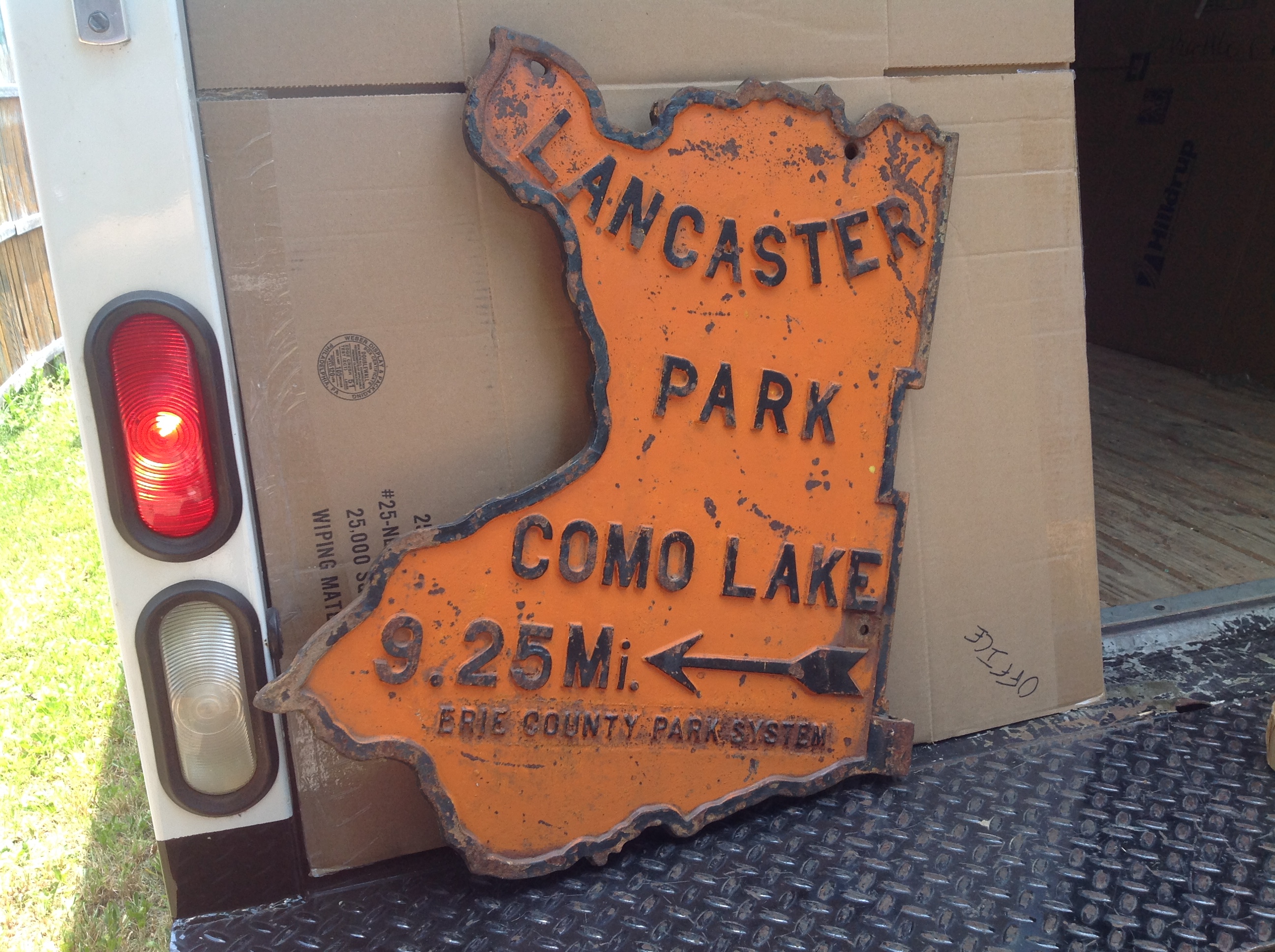 Rare antique heavy cast iron double sided Lancaster Park Como Lake sign in as found condition. Nice patina on both sides. Guaranteed not to find another one………….