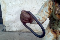 Antique, 1920’s cast iron lawn Jockey in as found condition. Nice condition for it’s age complete with concrete pad. A true piece of Americana…………….