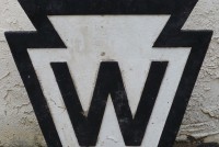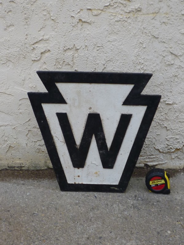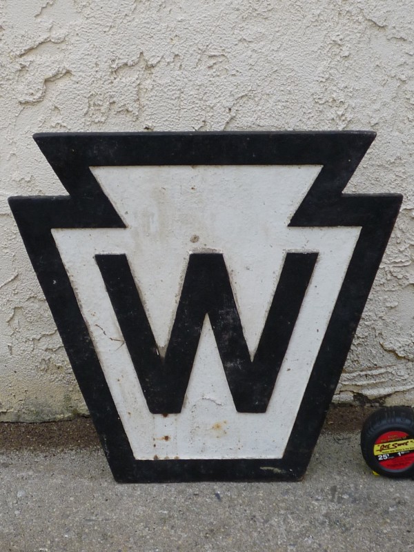 Antique Pennsylvania Railroad cast iron whistle sign measuring 16″ x 16″. Heavy and ready for displaying. Hard to find………