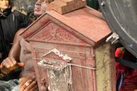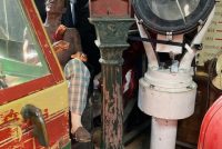 Antique cast iron street corner Gamewell fire alarm pull box in as found condition. Needs to be assembled but overall looks to be complete except for inner missing pieces. Heavy cast iron construction.