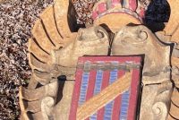 Antique Childs Restaurant Terra Cotta architectural element originally from Childs Restaurant , 6620 18th Avenue , Bensonhurst neighborhood ,Brooklyn New York, in as found condition. Massive in size measuring 74″ high x 48″ wide x 14″ deep. Great piece of Americana showing some wear but overall a killer architectural element. Childs also had several other restaurants around New York, one being at Coney Island.
