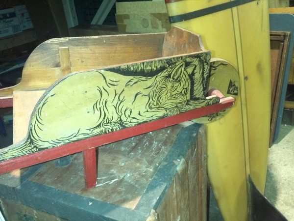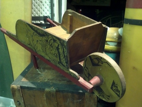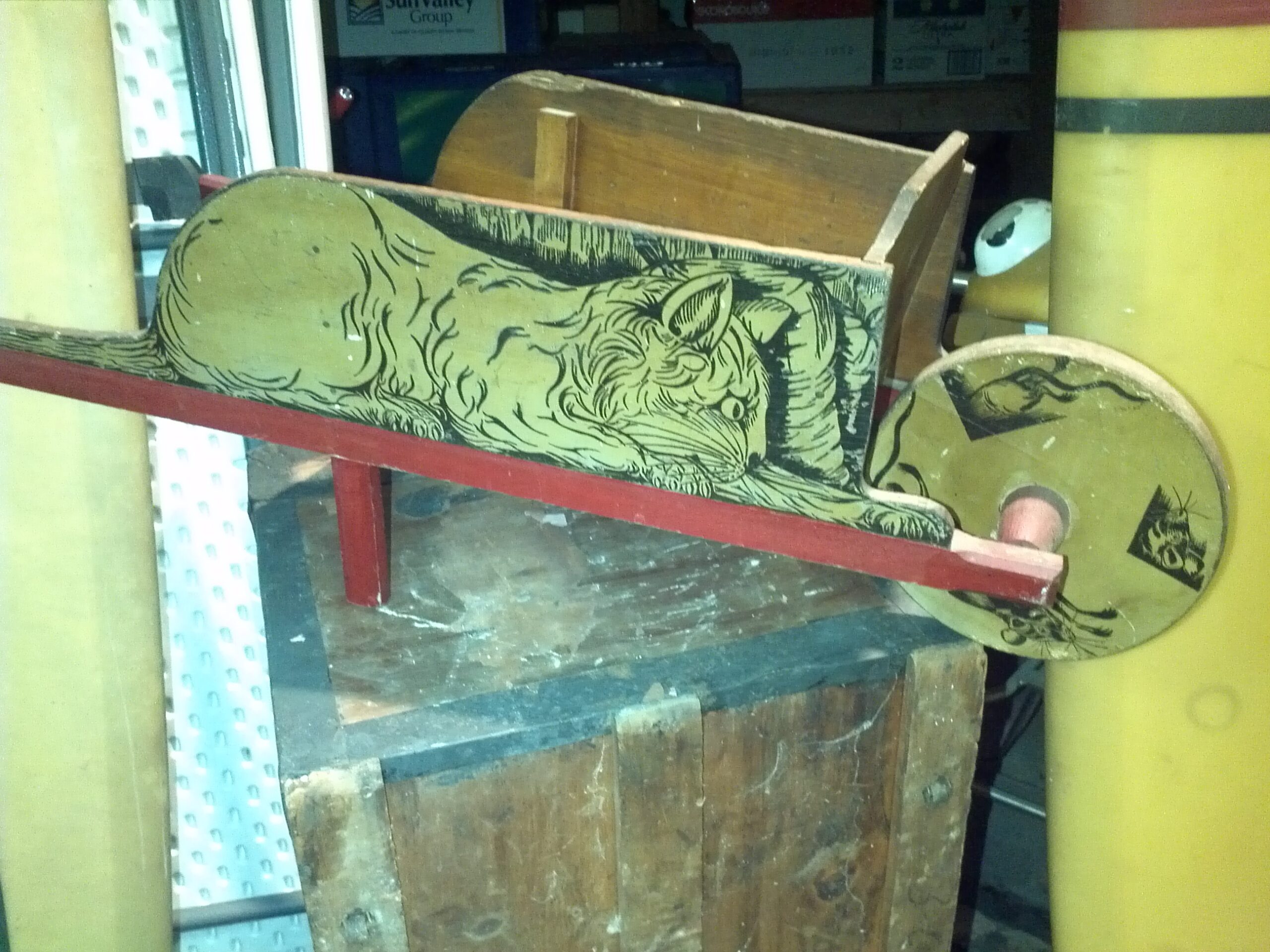 Antique child’s toy cat and mouse wheelbarrow in as found condition. Original owner moving to Florida, so had to part with this beautiful toy. It needs a new home……….