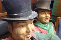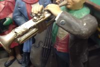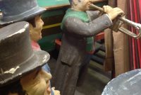 Antique Christmas Carolers store window display in as found condition. Showing some age defects but overall in very good shape. Minor restoration may be needed but nice enough for displaying as they sit. Made of hard formed rubber and other materials, Hard to the touch. Complete with lamp post…….