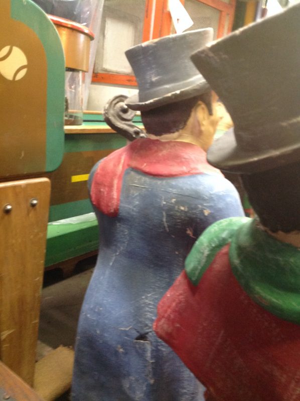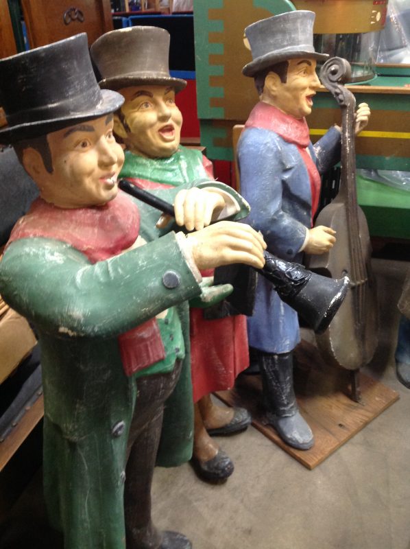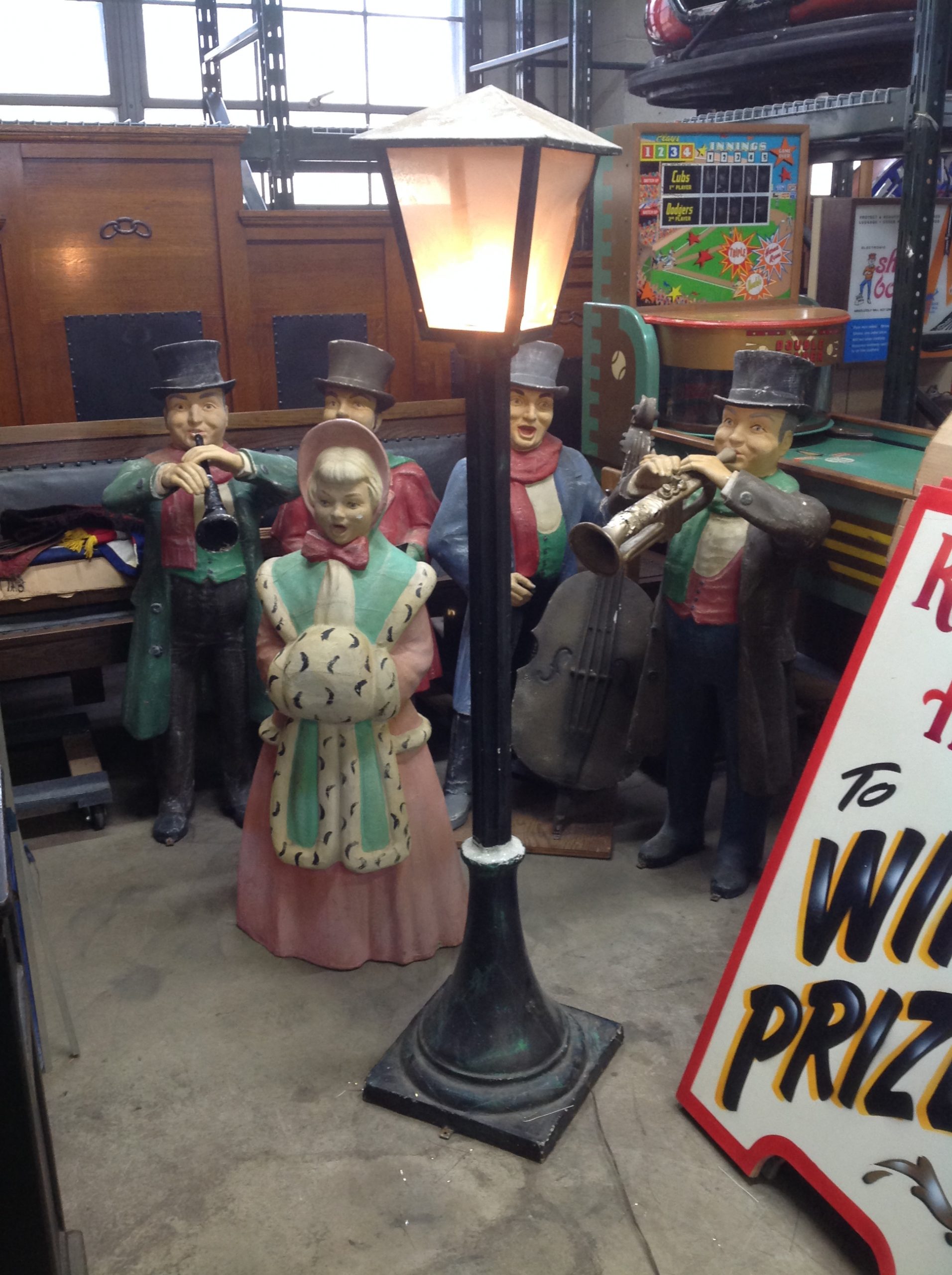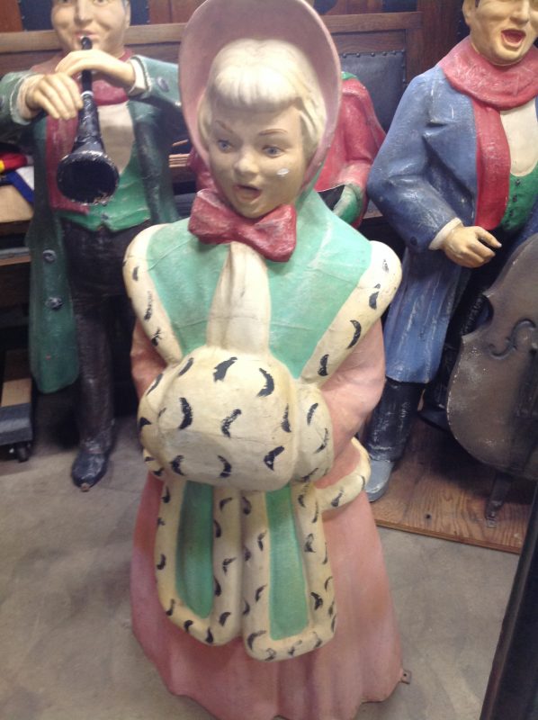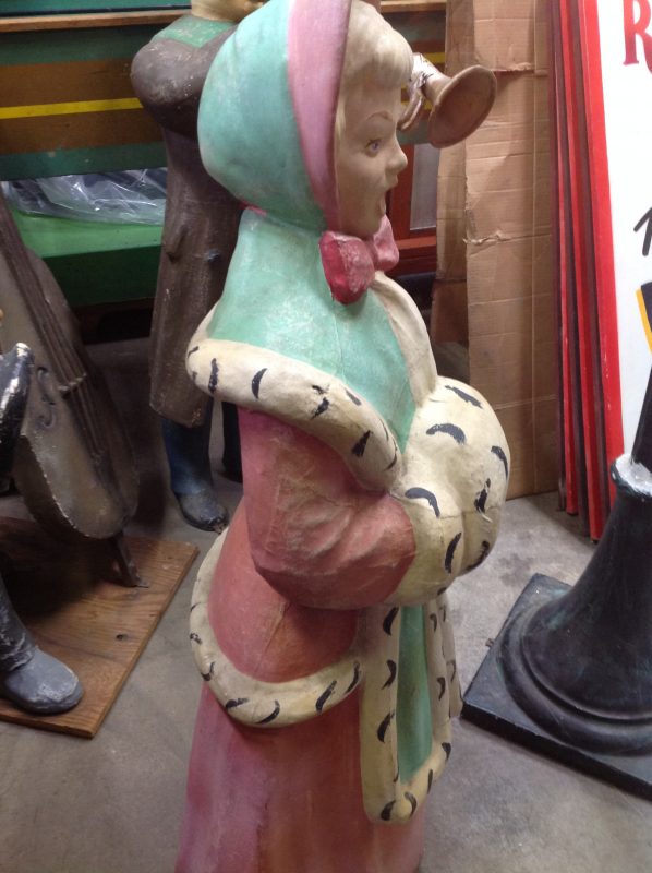 Antique Christmas Carolers store window display in as found condition. Showing some age defects but overall in very good shape. Minor restoration may be needed but nice enough for displaying as they sit. Made of hard formed rubber and other materials, Hard to the touch. Complete with lamp post…….
