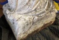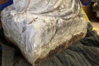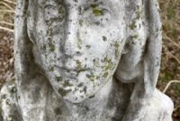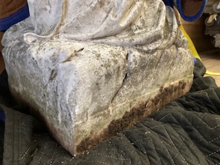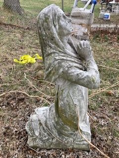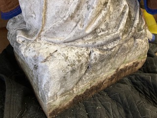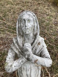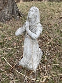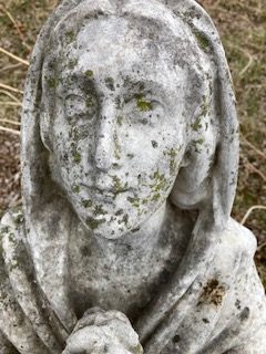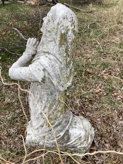 Antique Catholic Church carved stone Praying St. Bernadette Statue in as found condition. A true masterpiece of carving showing aging with very little damage. A great piece for your “Living” garden. Heavy stone measuring about 4′ tall. Need additional information, just ask……….
