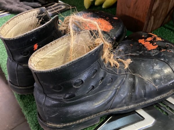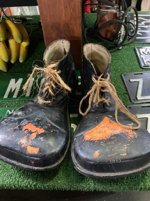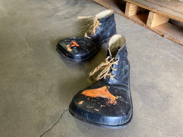 Antique circus clown shoes in as found condition. Original in every way and ready to be part of your collection. Heavy leather construction. As we know authentic clown shoes are getting harder to find…………