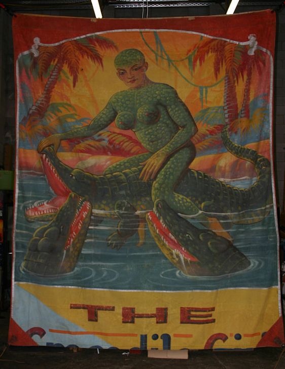 Antique Circus/Carnival Sideshow Alligator Girl Banner