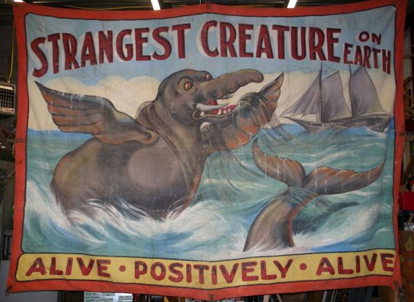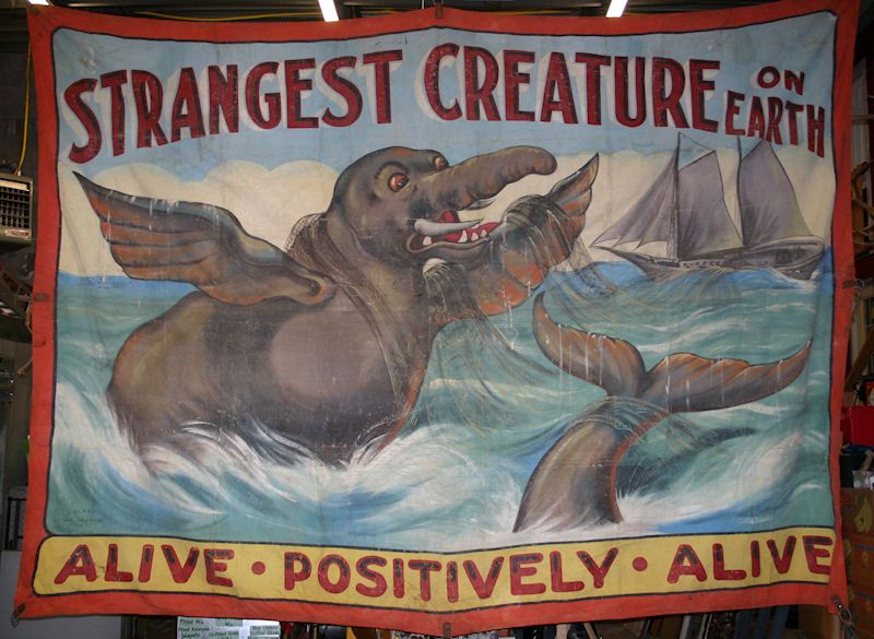 Antique Circus/Carnival Sideshow Freak Strangest Creature Banner