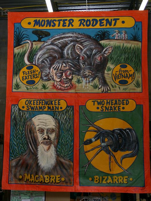 Antique Circus/Carnival Sideshow Freak Banner Monster Rodents