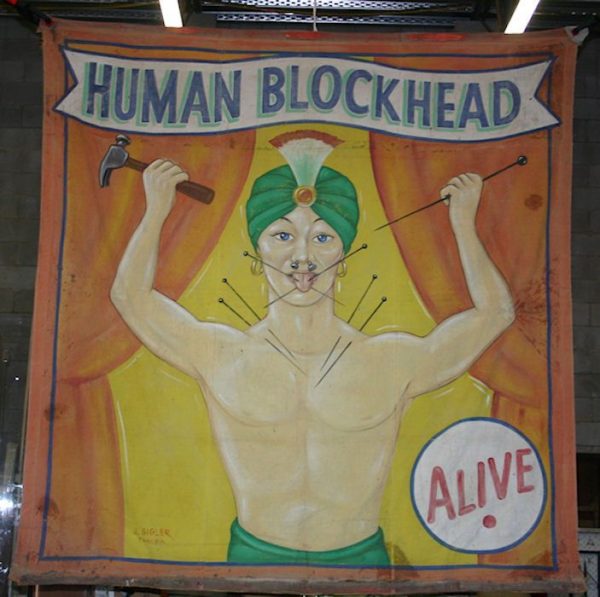 Antique Circus/Carnival Sideshow Freak Human Blockhead Banner