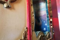 Antique custom made 1930’s Elephant Circus wagon used by Ringling in as found condition. Wagon started with Ringling, sold to Circus World and finally auctioned by Norton Of Michigan in the 1980’s. New owner used the wagon in local parades until stored away and discovered only a few weeks ago. Comes complete with all attachments. Modifications have been made over the years but overall a magnificent example of early wagon construction. Comes complete with custom made trailer for transport. At one time probably housed a Band Organ or Calliope. Measures 8′ wide x 19′ long x 13′ tall.