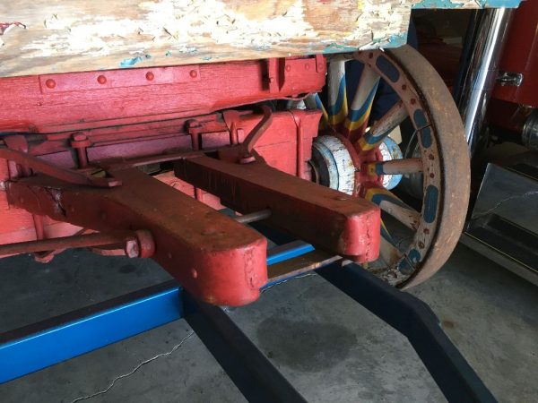 Antique custom made 1930’s Elephant Circus wagon used by Ringling in as found condition. Wagon started with Ringling, sold to Circus World and finally auctioned by Norton Of Michigan in the 1980’s. New owner used the wagon in local parades until stored away and discovered only a few weeks ago. Comes complete with all attachments. Modifications have been made over the years but overall a magnificent example of early wagon construction. Comes complete with custom made trailer for transport. At one time probably housed a Band Organ or Calliope. Measures 8′ wide x 19′ long x 13′ tall.