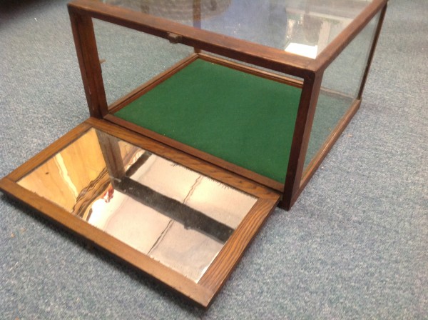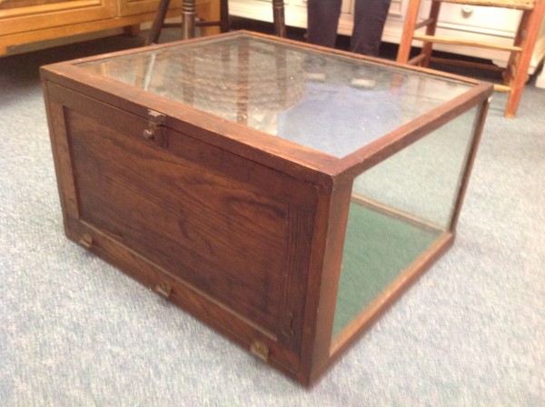 Nice small antique country general store counter top display case in as found condition. Good glass with fold down back door. Will fit almost anywhere………….