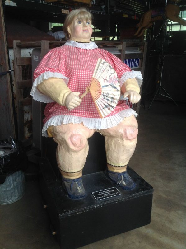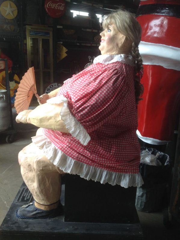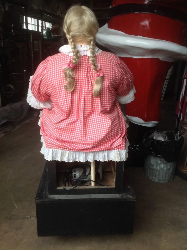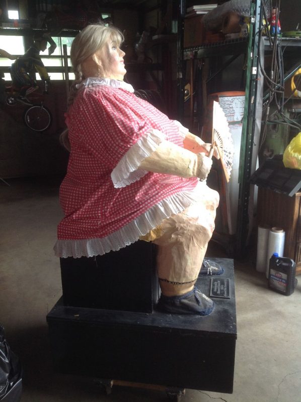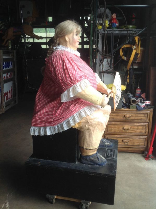 Antique animated Crescent Park RI amusement park laughing lady in as found working condition. This plump beauty works, shakes and moves side to side as she sits upon her resting place. Manufactured by the famous Messore Damon Company, New York back in the early 1950’s. She was made to promote attention to amusement rides, such as dark rides at attractions and amusement parks. Never manufactured to laugh but comes with a laughing CD. Made of paper mache and plaster. Nice overall condition needing very little restoration. Rare to find one as nice………..