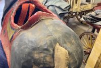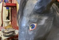 Vintage antique paper mache Donkey Jackass costume from A,T. Jones & Sons Baltimore, MD in as found condition. Nice condition for its age showing sign of wear. Made by A.T. Jones back in the 1950’s. A.T. Jones was the oldest costume and prop shop on record dating back to 1868. Google the company for more interesting history. Company closed recently giving us the opportunity to purchase some of the oldest costumes they had for rental. Don’t miss this opportunity to own a real piece of History………..