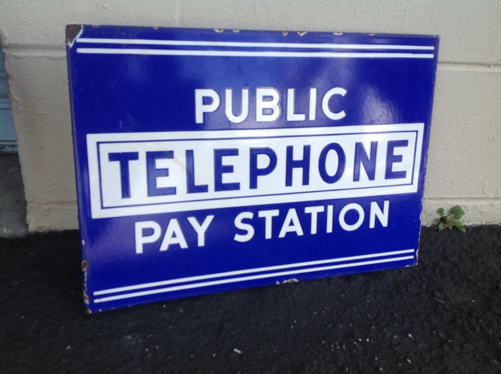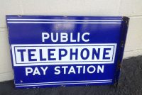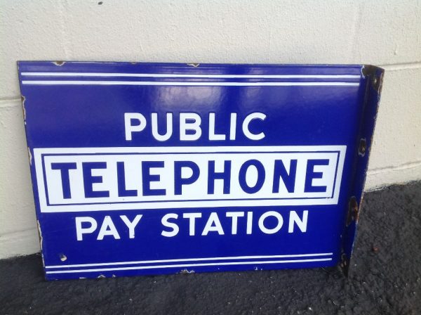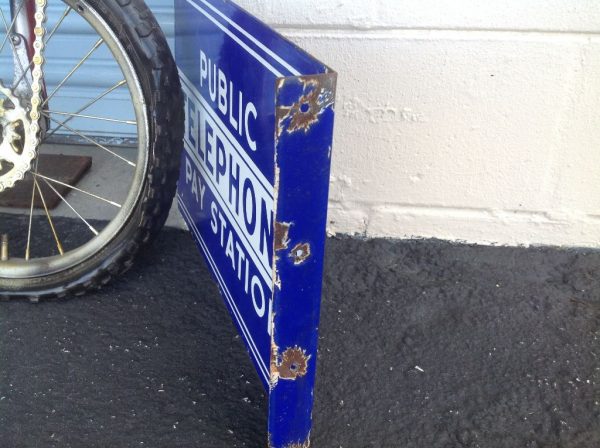 Antique Double Sided Flanged Porcelain Public Telephone Pay Station Sign