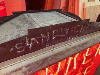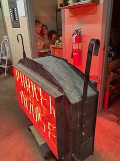 Antique double sided Parker House Tavern/bar neon sign in as found condition. Parker House Tavern, Florence, New Jersey closed many years ago after serving customers for over 100 years. In storage and purchased just a few weeks ago. Sign was taken down after a severe storm awhile back and survived again as the new owners are renovating the establishment into rental apartments. Nice working example……………….