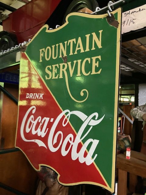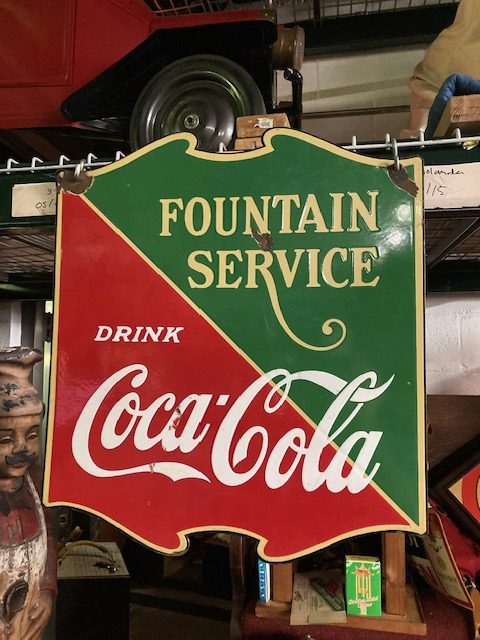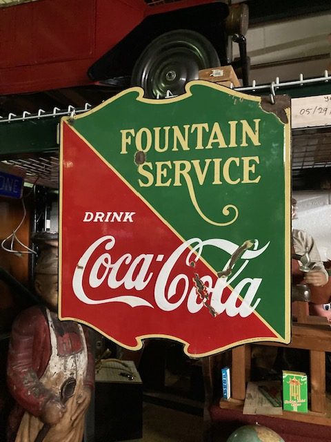 Antique Double Sided Porcelain Fountain Service Drink Coca Cola Soda Sign