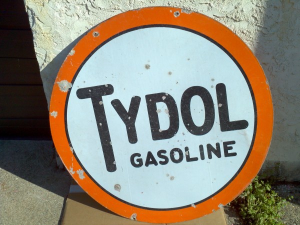 Antique Double Sided Porcelain Tydol Gas Station Sign